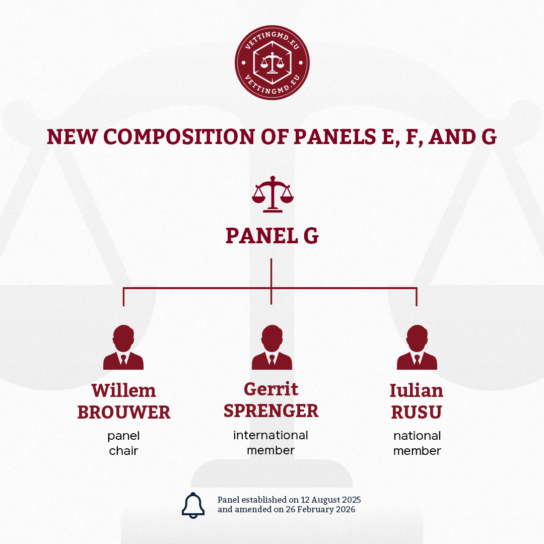 The Judicial Vetting Commission has revised the composition of Evaluation Panels E, F, and G to enable a proportional distribution of work among all Commission members. This decision comes in the context of circumstances including an increased number of individuals notified for evaluation.